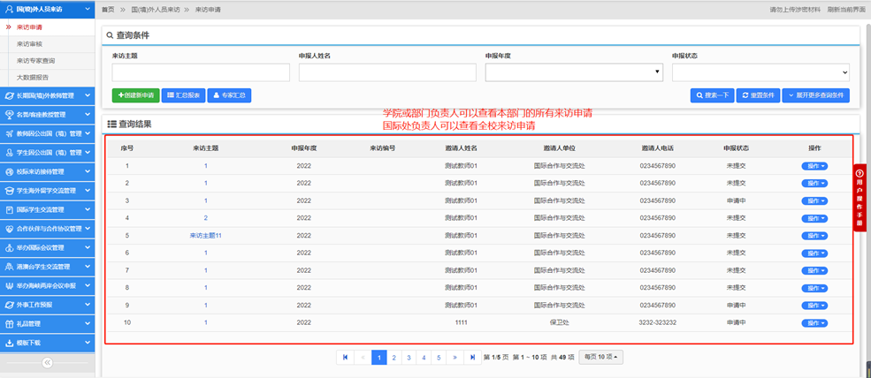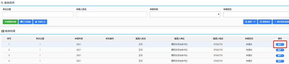通过查询条件可以导出学院或部门所有老师(学院或部门审核老师)或全校老师( 国际处审核老师)在某年外专邀请的汇总数据;