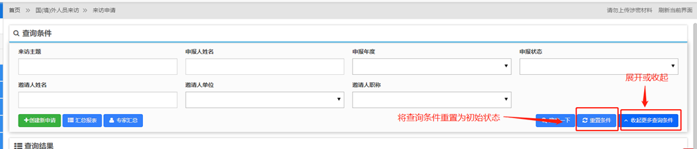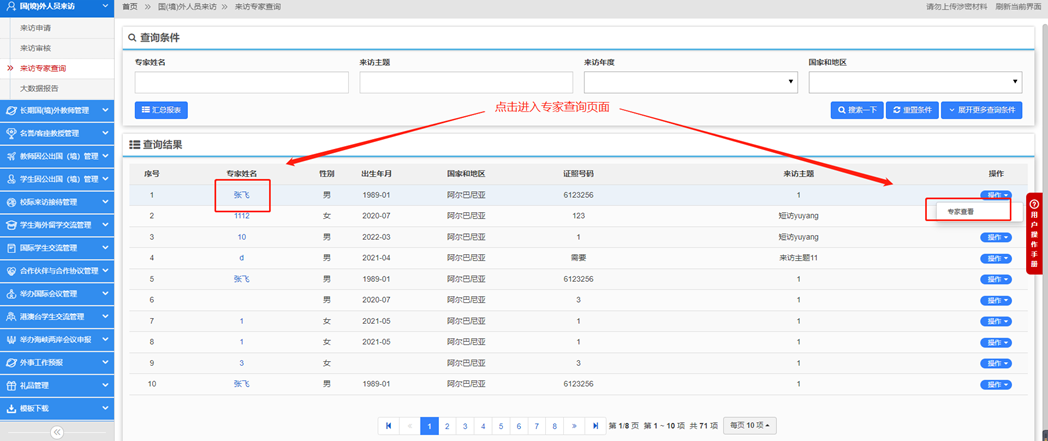 用来查询或通过汇总报表来汇总导出本学院(学院或部门审核老师)或全校(国际处模块管理员)在某年的外专来访情况;