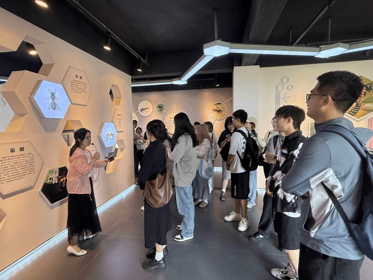 在中国西部蜜蜂文化馆,师生党员在讲解员的讲解下,开启了一场别开生面的"精神之旅"。从远古人类与蜜蜂的共生关系,到现代蜂产业的创新发展,一件件珍贵展品生动诠释了蜜蜂"勤劳、奉献、团结、自律"的精神品质。期间,师生均认真听讲并积极提问、讨论,深刻感悟蜜蜂精神。