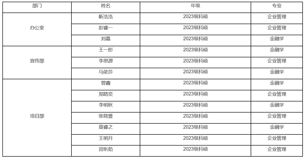 通过自主报名、资格确认以及面试竞选等环节,经过402永利集团研究生会酝酿研究,拟录取靳浩浩、王一彤等同学为2023-2024学年402永利集团研究生会各部门干事,现将名单公示如下: