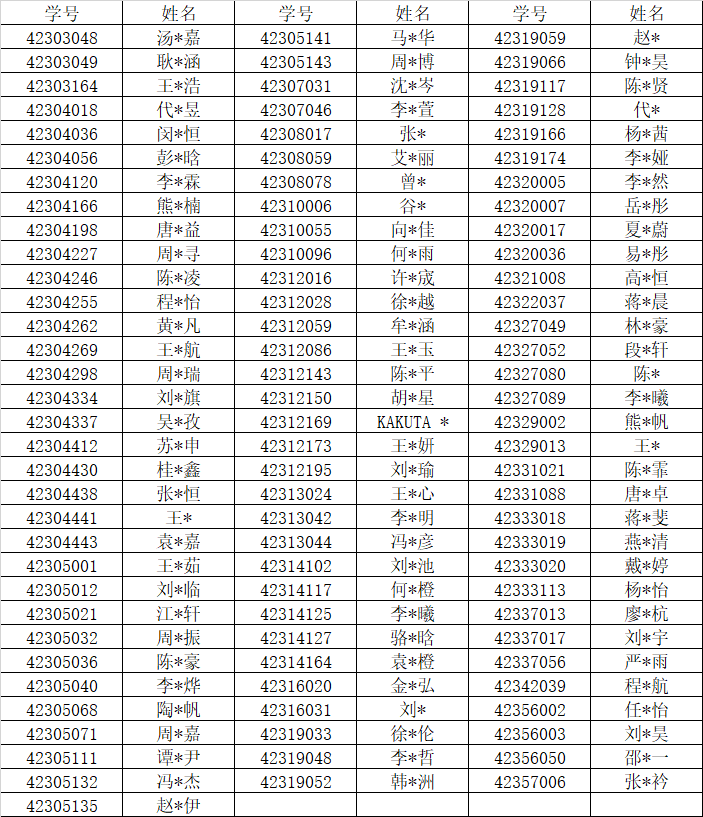 由于有同名情况发生,请大家认真核对学号。