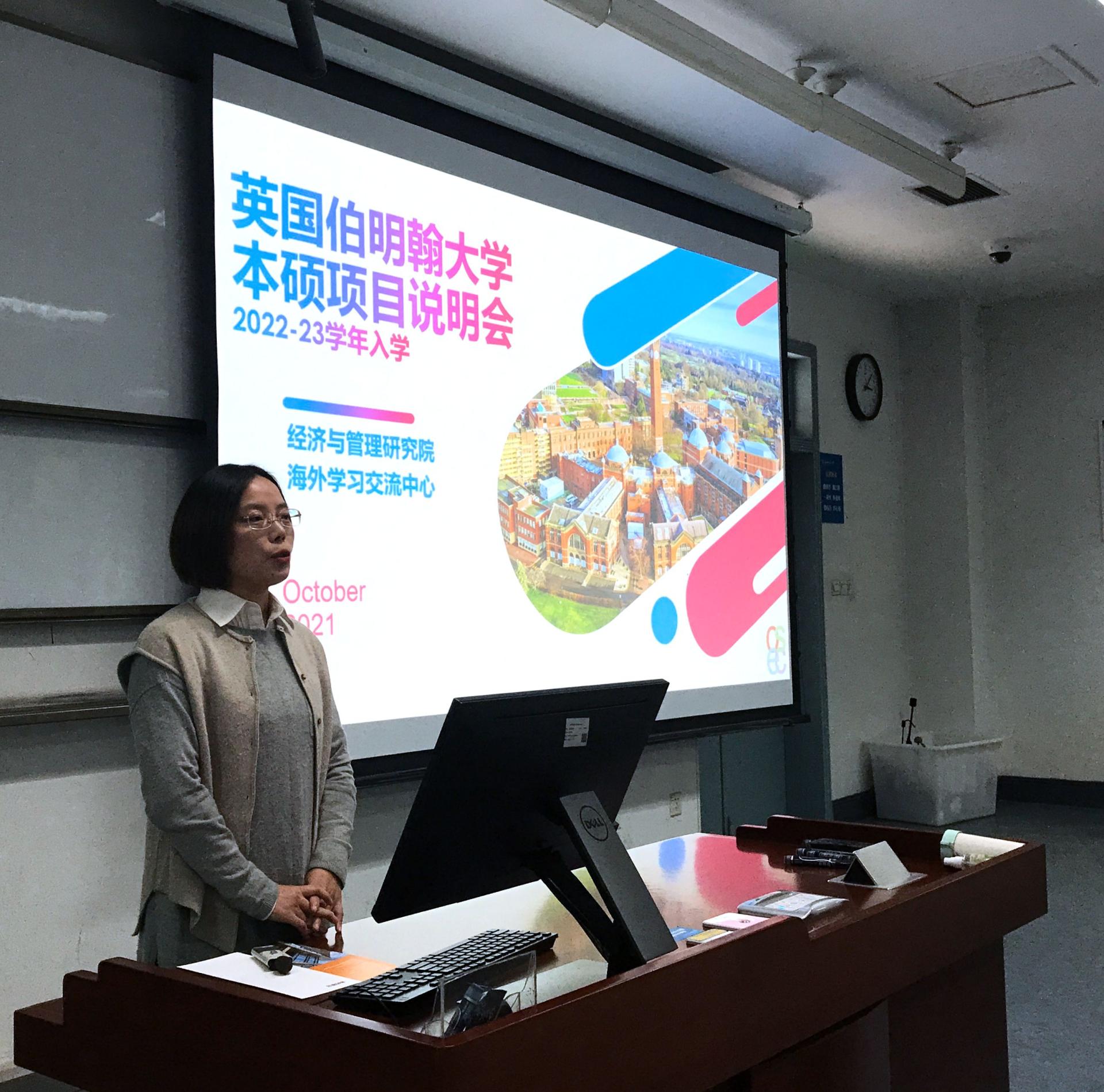 宣讲会上,OSEC的倪倩老师对伯明翰大学的“4+1”硕士项目、“1+1+1” 研究生双学位项目以及本科2+2项目的具体细节进行了详细介绍,包括录取条件、申请流程、专业选择、最终去向以及所需费用等。对此,同学们反响热烈,宣讲会也实现了较好的宣传效果。